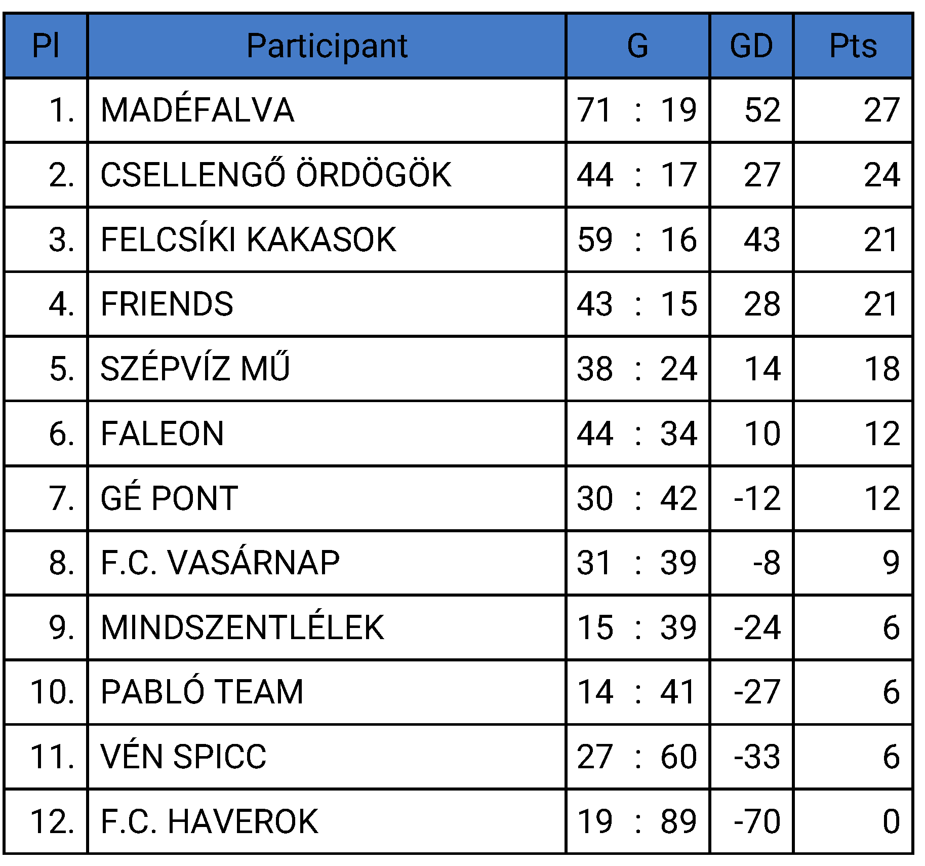 Kispályás labdarúgó bajnokság, 9. és 10. forduló